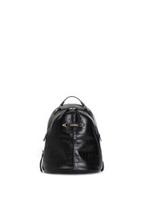 Sac à dos en matière synthétique imprimé croco. application d'étiquettes avec lettrage métallique. fermeture à glissière. poche intérieure zippée. bretelles réglables.