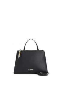 Sac shopping avec une structure rigide en saffiano. tirette avec lettres personnalisées et colorées. sac à double zip et équipé de plusieurs compartiments. poignée unique et bandoulière réglable.