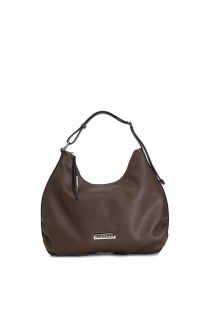 sac shopping souple avec bords contrastés, étiquette avec logo cn en métal dark brown