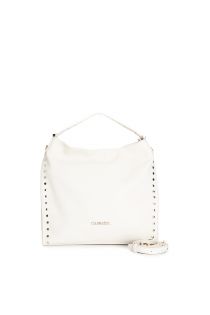 Sac à bandoulière souple avec application de rivets et attaches de poignées en métal. compartiment unique avec poche intérieure zippée. fermeture à glissière. bandoulière amovible.