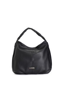 Sac souple avec fermeture éclair poignée enroulée et pendentif en forme de tulipe décoratif.