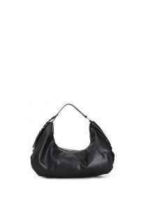 Sac souple avec fermeture éclair poignée à l'épaule et bande latérale avec lettres émaillées personnalisées ton sur ton.