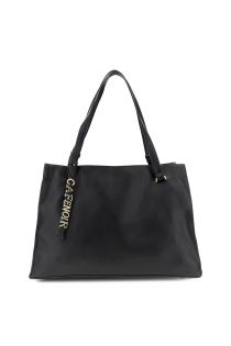 Sac souple en similicuir à effet grainé, grand format souple et anses non doublées avec inscription métallique maxi, équipé d'une grande poche intérieure plate zippée.