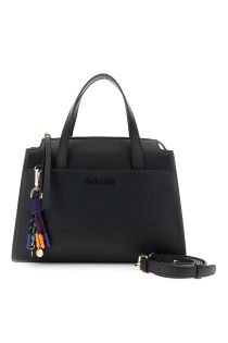 Sacoche en similicuir Saffiano avec poche plate sur le devant, logo ton sur ton et breloque multicolore à cordon. Bandoulière amovible pour un porté épaule double.