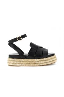 sandale compensée effet cuir synthétique avec bride en raphia black