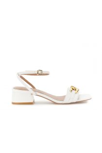 Sandales élégantes en similicuir avec bride cheville ajustable. elles présentent un bout ouvert orné d'un accessoire métallique décoratif et une semelle intérieure en cuir confortable. elles sont dotées d'un talon bloc de 4 cm. idéales pour des tenues estivales raffinées elles allient style et praticité au quotidien.