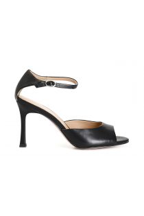 Élégante sandale en cuir avec bride à la cheville et patch à l'arrière. la doublure et la semelle intérieure confortable sont en cuir. talon haut de 8.5 cm de forme effilée. un classique intemporel qui ne peut manquer dans votre garde-robe.