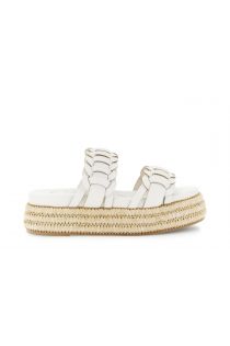 sandale en similicuir à deux brides et talon compensé en raphia. off white