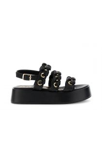 sandales à 3 brides en cuir nappa avec œillets et surpiqûres black