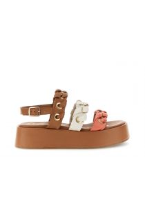 Sandales à trois brides en cuir nappa avec œillets et bride arrière parfaites pour un style affirmé. doublure et semelle intérieure en cuir plateforme de 5 cm pour un confort et un style incomparables. idéales pour des looks d'été tendance et audacieux.