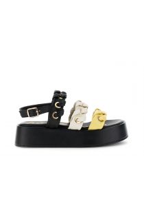 sandales à 3 brides en cuir nappa avec œillets et surpiqûres multi yellow