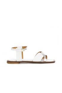 Sandales en cuir multicolore avec bandes asymétriques et bride à la cheville.