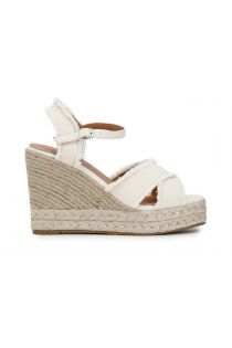 Sandales à brides croisées en tissu avec franges sur semelle compensée en corde h 90 mm