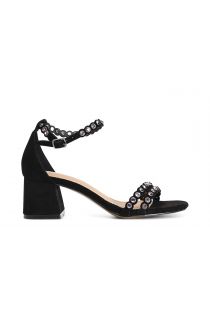 Sandales avec strass contrefort au dos. talon moyen. bride de cheville et boucle réglable.