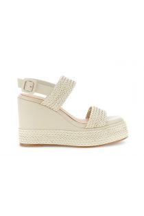 sandales à deux brides compensées en similicuir tressé effet cuir. beige