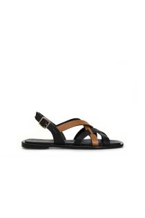 sandales à double croisement en cuir bicolore multi black