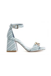 Sandales à imprimé raphia avec contrefort fermé et accessoire doré. semelle intérieure en cuir. talon haut de 70 mm.
