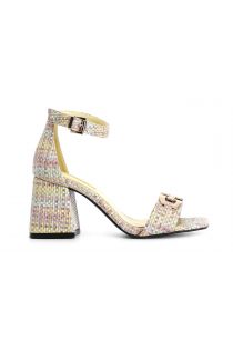 Sandales à imprimé raphia avec contrefort fermé et accessoire doré. semelle intérieure en cuir. talon haut de 70 mm.