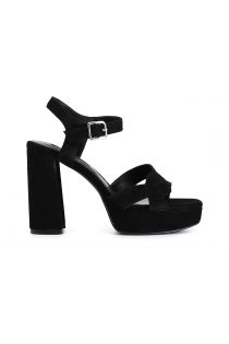 Sandales en daim. bandes croisées sur le devant. bride avec boucle réglable. semelle intérieure en cuir. plateforme de 30 mm de haut. talon haut de 110 mm.