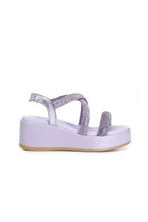sandales à semelle compensée avec bandes croisées en strass lilac