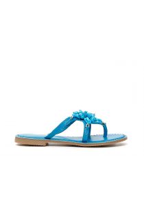 Sandales sur semelle compensée d'une hauteur moyenne ton sur ton avec l’empeigne avec double trépointe en contraste et empreinte blanche. La semelle anatomique rend le modèle confortable avec une bande décorée de strass brillants
