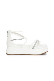 Sandales asymétriques avec mignons et strass. fermeture éclair au dos. cale de 3.5 cm de haut