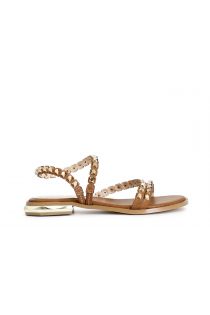 sandales asymétriques avec cabochons à facettes tan