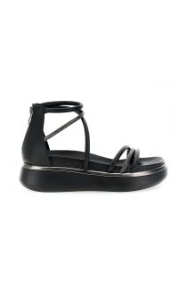 Sandales compensées asymétriques à fines brides ornées de micro-brillantes fermeture éclair à l'arrière et bride enveloppante. la plateforme de 3 cm et la semelle de 4 cm sont parfaites pour apporter une touche moderne et scintillante à vos tenues d'été.