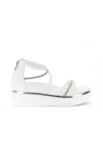 Sandales compensées asymétriques à fines brides ornées de micro-brillantes fermeture éclair à l'arrière et bride enveloppante. la plateforme de 3 cm et la semelle de 4 cm sont parfaites pour apporter une touche moderne et scintillante à vos tenues d'été.