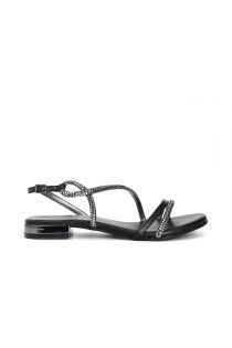 Sandales asymétriques avec strass thermoscellés. la doublure et la semelle intérieure sont en cuir. le talon mesure 1.6 cm.