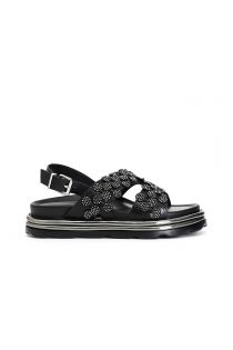 sandales asymétriques avec surpiqûre en micro strass black