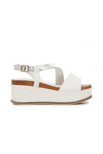 Sandales asymétriques en cuir sur semelle compensée gainée en cuir et confortable semelle intérieure.