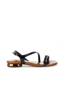 sandales asymétriques en cuir laminé et strass black