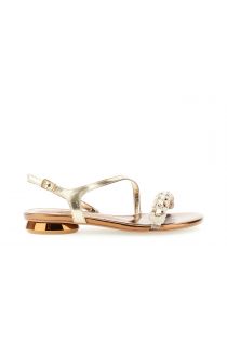 sandales asymétriques en cuir laminé et strass gold