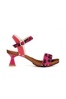 sandales avec bande motif poulain tacheté et talon en forme de sablier hot pink