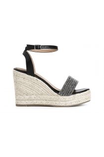 Sandales avec bandes de strass sur semelle compensée en corde et plateforme. bride à la cheville.