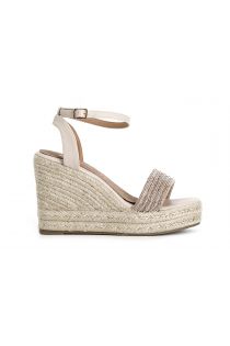 Sandales avec bandes de strass sur semelle compensée en corde et plateforme. bride à la cheville.
