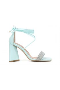 sandales avec des lanières à nouer autour de la jambe avec bande strass et talon sculpture