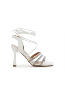 sandales avec des lanières à nouer autour de la jambe avec pointe carrée et micro-strass