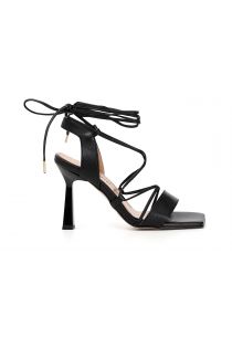 Sandales avec laçage à nouer autour de la jambe avec pointe carrée et talon 115, doublure et semelle intérieure en cuir.