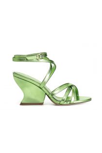 sandales avec lanières nouées autour de la jambe effet lamé green