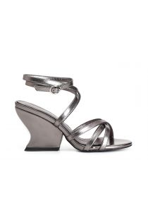sandales avec lanières nouées autour de la jambe effet lamé pewter