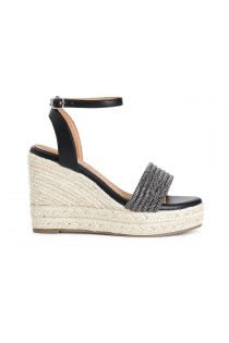 Sandales avec décor de strass mignons sur le dessus. cale de corde de 10.5 cm et plateforme de 3.5 cm. bride à la cheville. semelle intérieure en cuir.