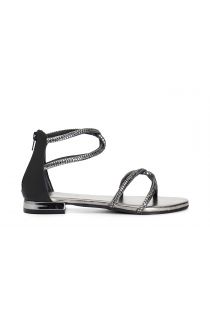 Sandales avec strass thermocollés. patch et zip au dos. la doublure et la semelle intérieure sont en cuir. le talon mesure 1.6 cm.