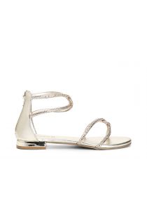 Sandales avec strass thermocollés. patch et zip au dos. la doublure et la semelle intérieure sont en cuir. le talon mesure 1.6 cm.
