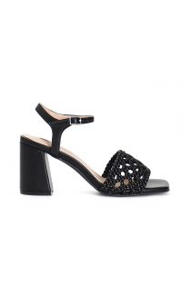 Sandales avec tige tissée. la semelle intérieure est en cuir. talon confortable de 8.3 cm.