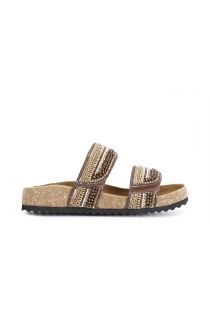 sandales basses modèle mules en liège et strass dégradés multi brown