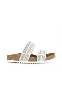sandales basses modèle mules en liège et strass dégradés white combo