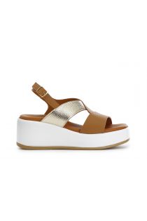 Sandales bicolores avec croisement asymétrique multi-matières. la semelle intérieure en cuir rembourrée rend la chaussure confortable même après plusieurs heures d'utilisation.