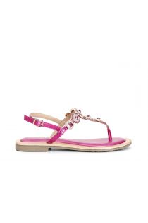 Sandales tongs bijoux en cuir. la doublure et la semelle intérieure sont en cuir. le talon mesure 1.6 cm.